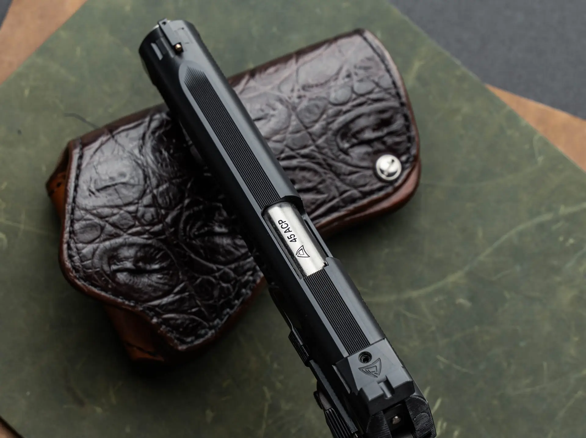 Most of our pistols come standard with a traditional Hot Salt Blue finish, with matte rounds and flat plate-satin polished flats. Using a flat plate on the frame and/or slide allows for uniform polish marks and keeps the corners nice and straight without rounding or waves. However, we also offer full bead blast blue standard on our Quantico Series and as a no cost option on the Prime Series. Bluing is strikingly beautiful, but it does show wear and we recommend keeping a nice layer of oil on your pistol to preserve it for generations. A blued pistol that is regularly shot and holstered will begin to show what we call “honest wear,” and we think there is nothing more beautiful than a well-used ACW. It is not uncommon to see wear on the sides of a blued grip safety or a frame underneath the thumb safety, these parts do need to make contact in order to be tight. Also, the pins and small parts are different hardness that the frame, slide and grips safety so they sometimes have a different hue under certain lighting conditions. This is all part of the classic look of a blued pistol. We recommend you shoot the piss out of your ACW and be proud of each mark it earns at the range. If you want it to look perfect again, we can always reblue it when it’s time for a tune up, but no one fears a man with a gun that looks unshot……